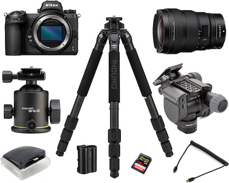 The Benro Polaris Astrophotography Kit w/ Nikon Z6II offers a full package with an incredibly versatile tripod head that includes modes such as People Remover, Panorama, Motion Timelapse, Dynamic Exposure Timelapse, Focus Stacking, and Star Tracking. The included control cable enables use of the camera with this tripod head, and with the included accessories, you’ll have everything you need for the shoot you want.
