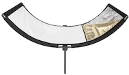 Arc-Shaped Design. The Westcott Eyelighter 3 (Silver/Black & Sunlight/White) lets you achieve pro-grade clamshell lighting with one light source. It has an arc-shaped design that matches the human eye’s curvature, giving you seamless catchlights without unflattering shapes or gaps.