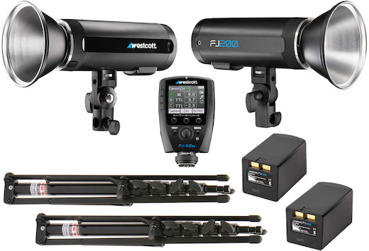 Streamline your next lighting rental with the Westcott FJ200 2-Light Location Kit! This kit is a great option for users desiring a small but powerful lighting kit with few frills and an affordable price. This one-click solution provides you with a wireless dual fixture, battery powered strobe solution. To save you time trying to figure out a basic support solution, we’ve bundled two Matthews MERF 7.4ft Mini Reverse Stands. If you are looking for a slightly more powerful, but similar kit, we also rent the Westcott FJ400 2-Light Location Kit.