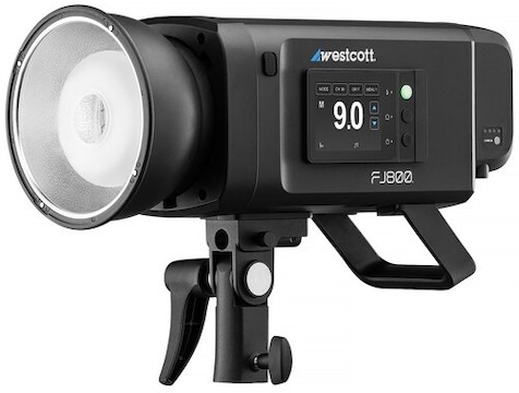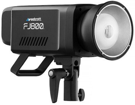 Compact Monolight Powerhouse. This Westcott FJ800 800Ws Touchscreen Strobe w/ FJ Pro Battery sports a stunning 30W bi-color LED modeling light and an 800W strobe with a rapid 0.01-1.8 sec recycling time. A great addition to any studio or production, the FJ800 also boasts a 9-stop power range in 0.1 and 1.0 increments, a 1/25,000 peak action-stopping flash duration in Freeze mode, high-speed sync support up to 1/8000 second, as well as front and rear curtain sync.