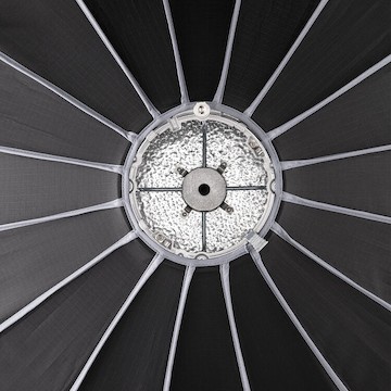 Collapsible and Portable. Beauty dishes can be fickle products. They can get dented, warped, and damaged. The Rapid Box Switch Beauty Dish combats this with a collapsible umbrella-style design. Setup and teardown are super quick, while the whole setup is compact for easy storage.