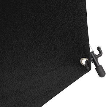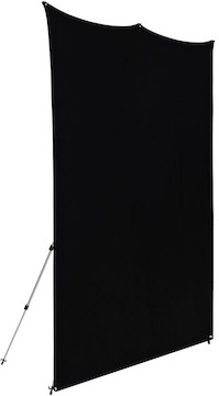 The included Rich Black Background is constructed from 100% polyester fabric and is solid black. There are metal grommets at the top and at each corner of the background to hold it taut and keep wrinkles to a minimum.