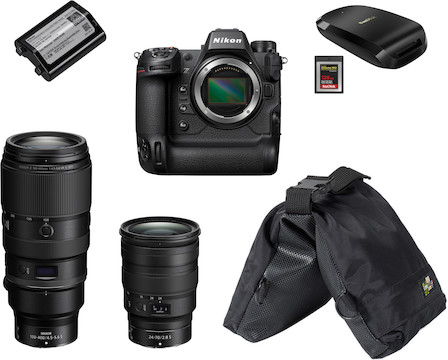 Our Wildlife Kit for Nikon Z9 includes everything you need to capture great wildlife photos in a variety of scenarios. With the included full-frame camera, exceptional image quality and optical design is attainable in whatever environment you’re in. Two lenses are provided to give you options when you’re shooting close up or farther away, and the included lens sack offers camera setup versatility in the wild, whether you need to set up on an uneven surface or even on the hood of a car. Click on any of the highlighted links below for more information!