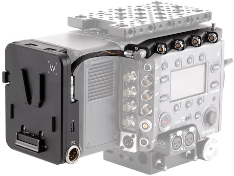 Power pass through to a Sony VENICE from V-Mount batteries (not included)