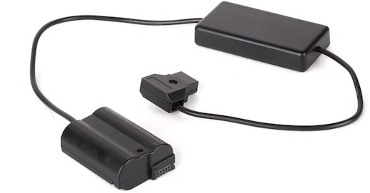 This is the Wooden Camera D-Tap to Nikon EN-EL15 Power Adapter 20-Inch to power select Nikon DSLRs and mirrorless cameras from a Wooden Camera Gold Mount Pro Battery Plate or Wooden Camera V-Mount Pro Battery Plate.