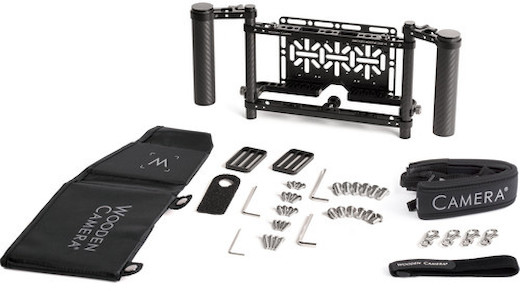 Ease of Use. The DMCv3 gives you simplified rod-based height adjustment, and you can quickly and easily position its ergonomic carbon fiber hand grips via the built-in 15mm clamps. This version comes pre-installed with a V-Mount battery plate that has swing-away functionality for easy access to the back of your monitor and installed wireless devices. You can use the built-in baby pin clamp with locking thumbwheel to mount this cage to a stand.