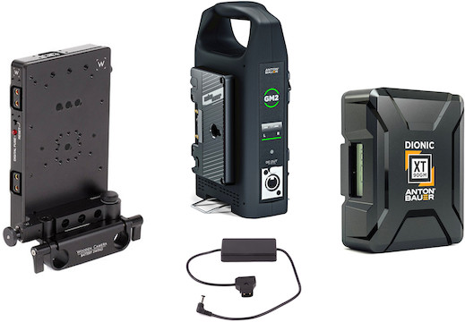 The Wooden Camera Gold Mount Power Kit for FS7/FS7M2/EVA1 is a one-click power and 15mm rod mount solution for the Sony PXW-FS7, Sony PXW-FS7M2, and the Panasonic AU-EVA1 and includes everything you’ll need to power a camera using standard Anton Bauer Gold Mount batteries. Click on any of the package items below for more information.