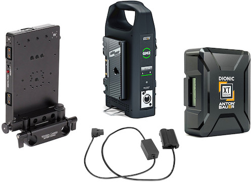 The Wooden Camera Gold Mount Power Kit for Nikon EN-EL15 is a one-click power and 15mm rod mount solution for select cameras using the Nikon EN-EL15 battery, such as the Nikon D850 and Nikon Z7 and includes everything you’ll need to power a camera using standard Anton Bauer Gold Mount batteries. Click on any of the package items below for more information.