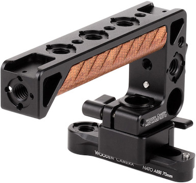 The Wooden Camera NATO Handle Plus v2 Kit w/ 2.8" Rail provides multiple top / side handle mounting options for Wooden support kits and allows for mounting additional threaded, shoe, and 15mm rod accessories. Key features include:
