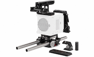 The Wooden Camera Pro Accessory Kit for RED KOMODO (Gold Mount) preps a RED KOMODO for 15mm rod accessories, 1/4" & 3/16" screw mounted accessories, and Gold Mount power. Key features include: