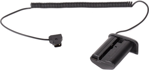 We rent the Wooden D-Tap to Canon LP-E19 Power Adapter 20-inch to power select Canon DSLRs from a Wooden Camera Gold Mount Pro Battery Plate or Wooden Camera V-Mount Pro Battery Plate (not included).