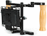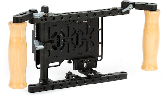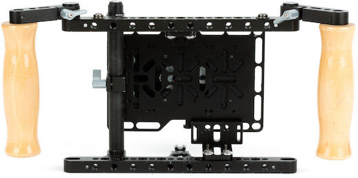 The Wooden Director’s Monitor Cage v2 is a versatile cage with pre-installed V-Mount battery plate designed to be universally compatible with any monitor up to nine inches. Key features include: