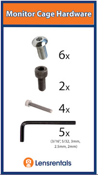 • The product just includes the monitor cage and battery plate. You’ll need to rent / provide your own batteries, chargers, or monitors for use with this product.