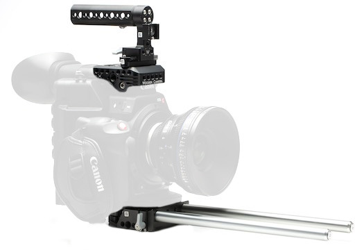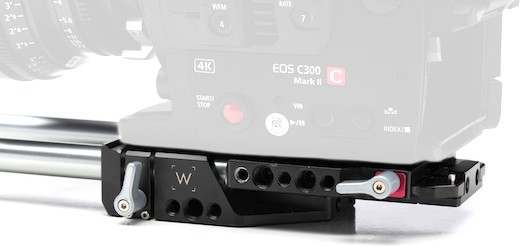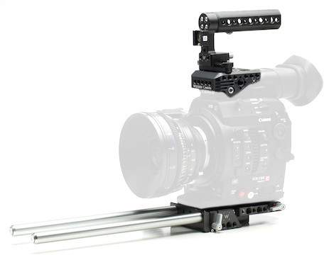The Wooden Camera Quick Kit for Canon C300 Mark II is a complete mounting solution with rods. Key features include: