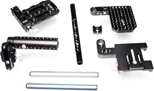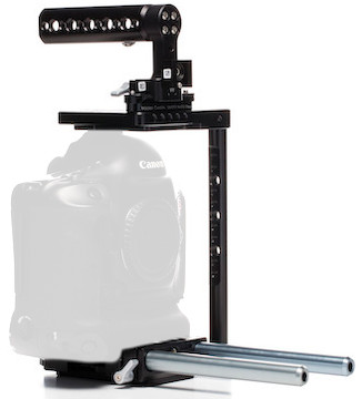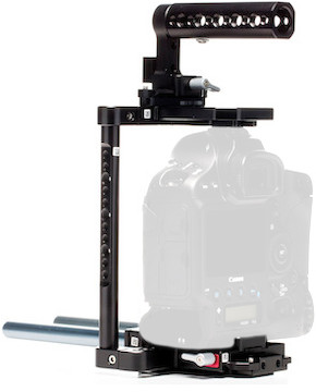 The Wooden Camera Quick Kit for Large DSLRs is a complete cage solution with rods. Click here for an updated version. Key features include: