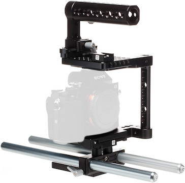 The Wooden Camera Quick Kit for Small DSLR Cameras is a complete cage solution with rods and the predecessor to the Wooden Unified DSLR Base Accessory Kit – Small. Key features include: