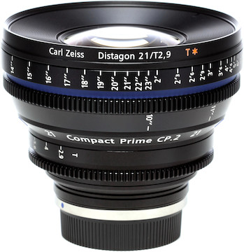 The Zeiss Compact Prime CP.2 21mm T2.9 (EF) is a high-quality cine lens and the predecessor to the Zeiss CP.3 21mm T2.9. Key features include: