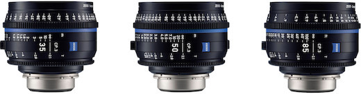 The Zeiss Compact Prime CP.3 Standard 3-Lens Set (EF) includes: