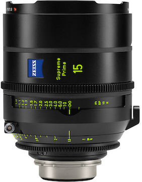 The Zeiss Supreme Prime 15mm T1.8 is an LPL-format cine prime that can cover cameras with large-format sensors. Key features include: