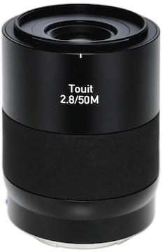 Short-Tele/Macro E-Mount Lens. With a 35mm-equivalent focal length of 75mm, the Touit 50mm is designed to be used as a macro lens. It reaches a true 1:1 reproduction ratio with a 6.0-inch minimum focusing distance. The Touit 50mm’s 75mm-equivalent focal length means that it’s also a great portrait lens—its f/2.8 aperture enables good subject/background separation. It features full electronic compatibility with Sony E-mount camera features, including autofocus, exposure control, and EXIF data.
