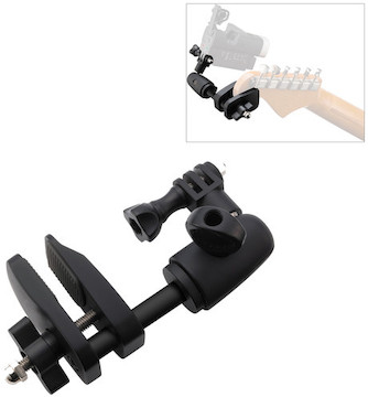 The Zoom GHM-1 Guitar Headstock Mount for Q4 Video Recorder clamps to the headstock of a guitar (or other similar surfaces), allowing you to mount an action camera to capture live guitar playing from a unique perspective, used primarily during live performances to highlight a guitarist’s performance. The 1/4"-20 to three-prong adapter can also be used to mount other action cameras like the GoPro Hero10. Weighing in at only half a pound, this clamp is small and light enough to not interfere with your playing or cause unwanted neck dive.